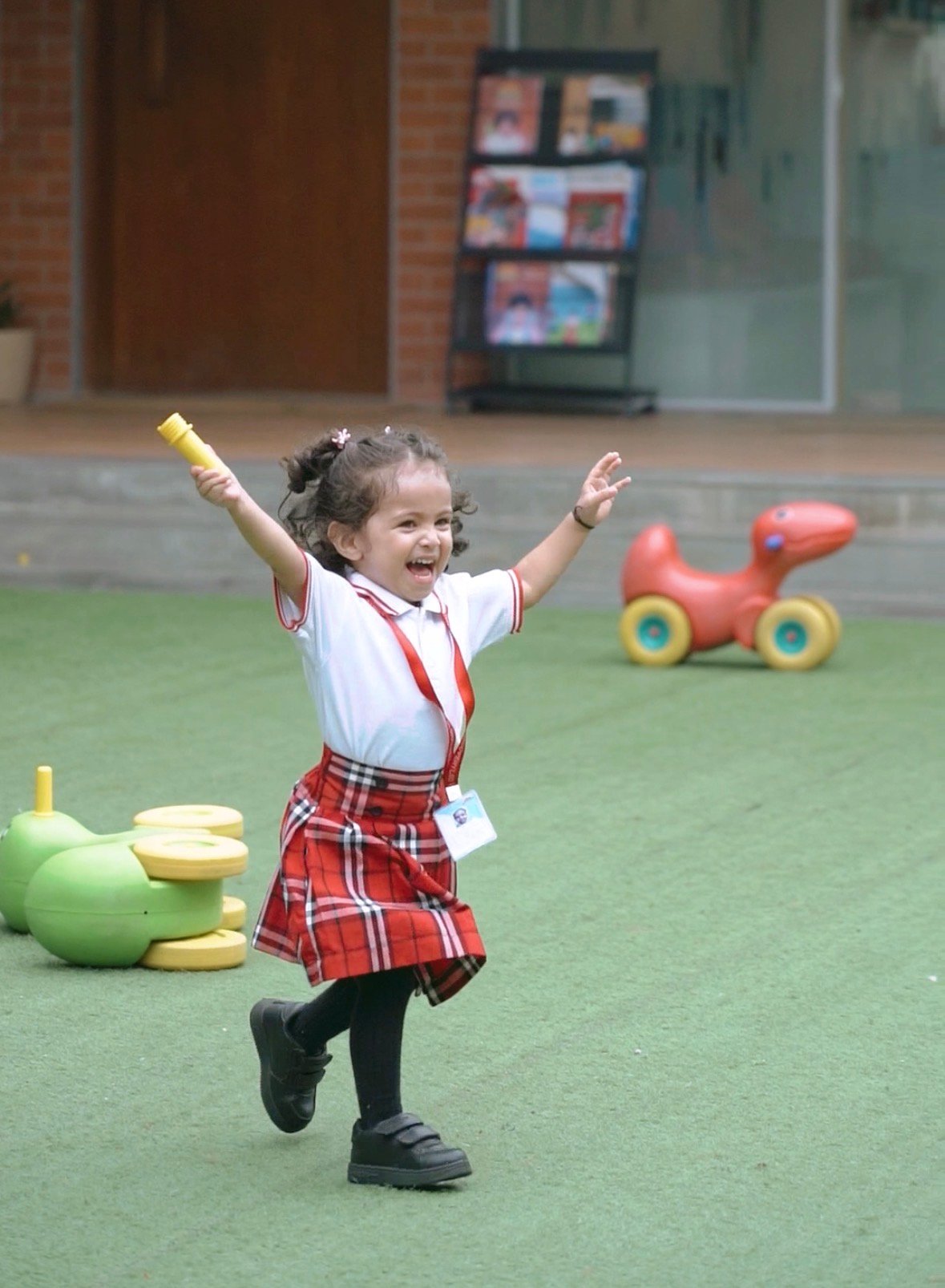 In Nursery, kids start exploring the world around them. The curriculum helps them develop communication skills, motor abilities, and early thinking skills. They learn to talk, solve puzzles, and get creative with rhymes, games, and activities. It’s all about sparking their imagination, helping them dream big, and making learning feel like an exciting adventure.